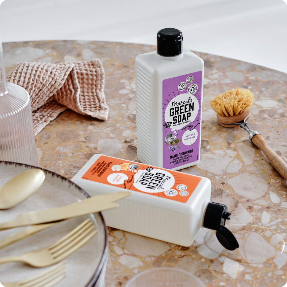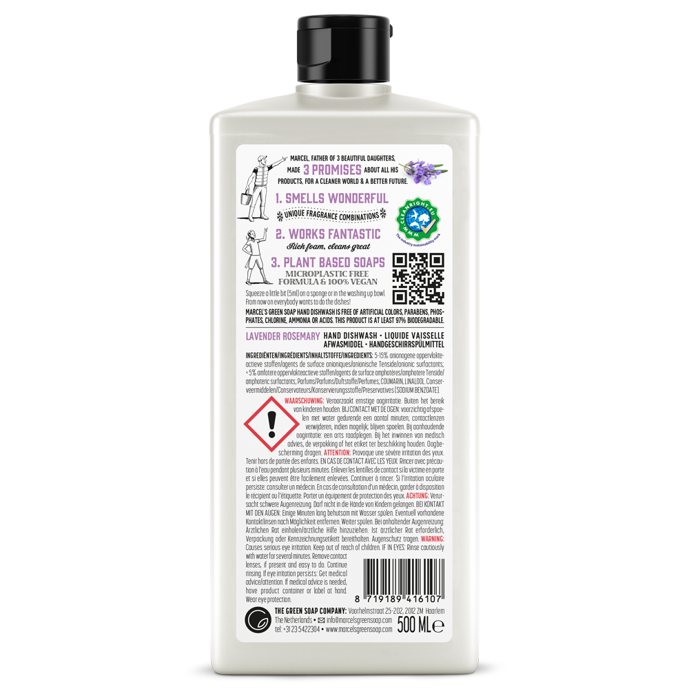 Marcel’s Green Soap Afwasmiddel voor een stralend schone vaat. Met de heerlijke geur van Lavendel & Rozemarijn voor een verfrissend en ontspannen handafwasje.