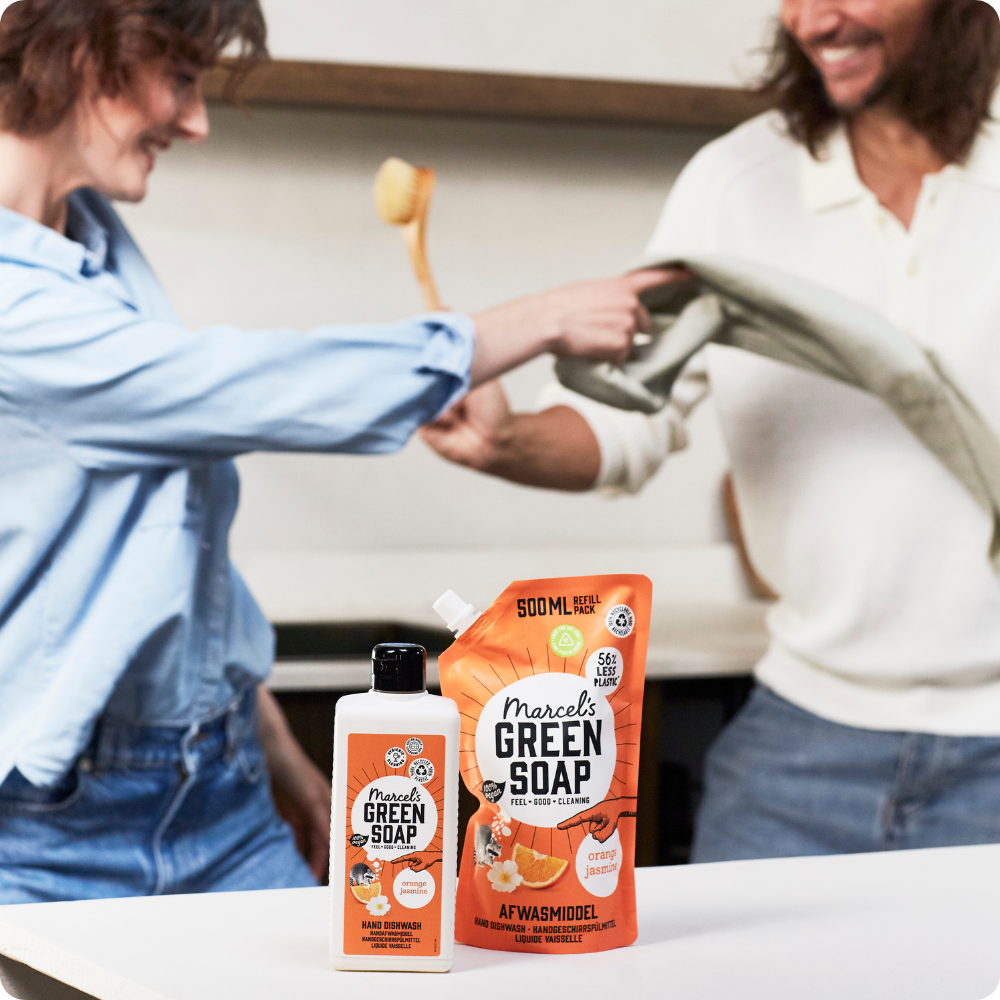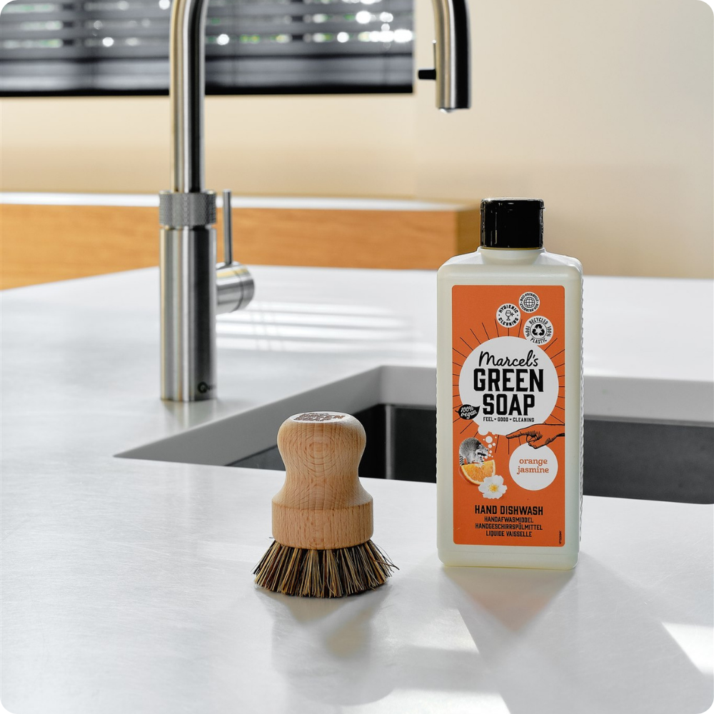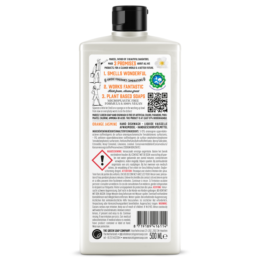 Marcel’s Green Soap Afwasmiddel voor een stralend schone vaat. Met de heerlijke geur van Sinaasappel & Jasmijn voor een verfrissend en ontspannen handafwasje. Fles leeg? Vul 'm eenvoudig bij met de Afwasmiddel Navulverpakking Sinaasappel & Jasmijn en bespaar plastic!