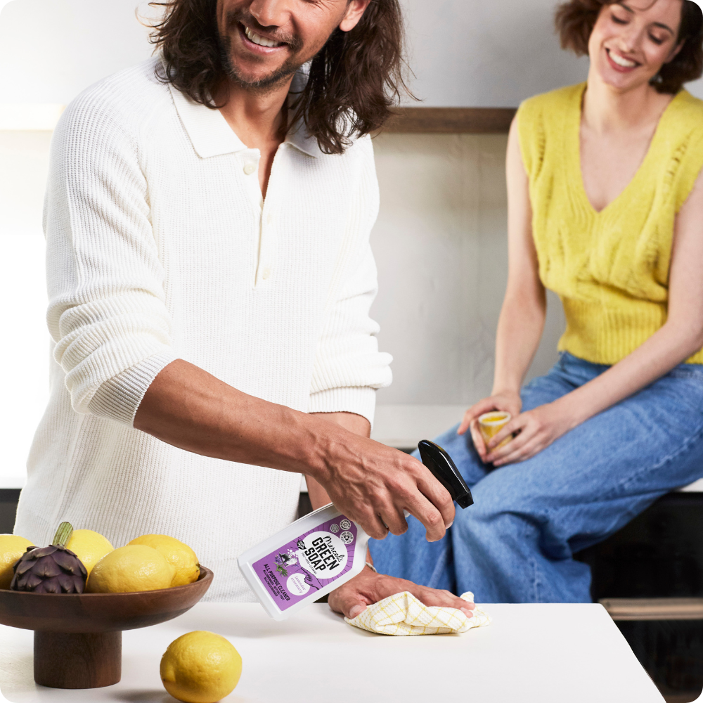 Marcel’s Green Soap Allesreiniger Spray voor de snelle schoonmaakklus tussendoor. Met de heerlijke geur van Lavendel & Rozemarijn. Sprayfles leeg? Vul 'm eenvoudig bij met de Allesreiniger Spray Navulverpakking Lavendel & Rozemarijn en bespaar plastic!