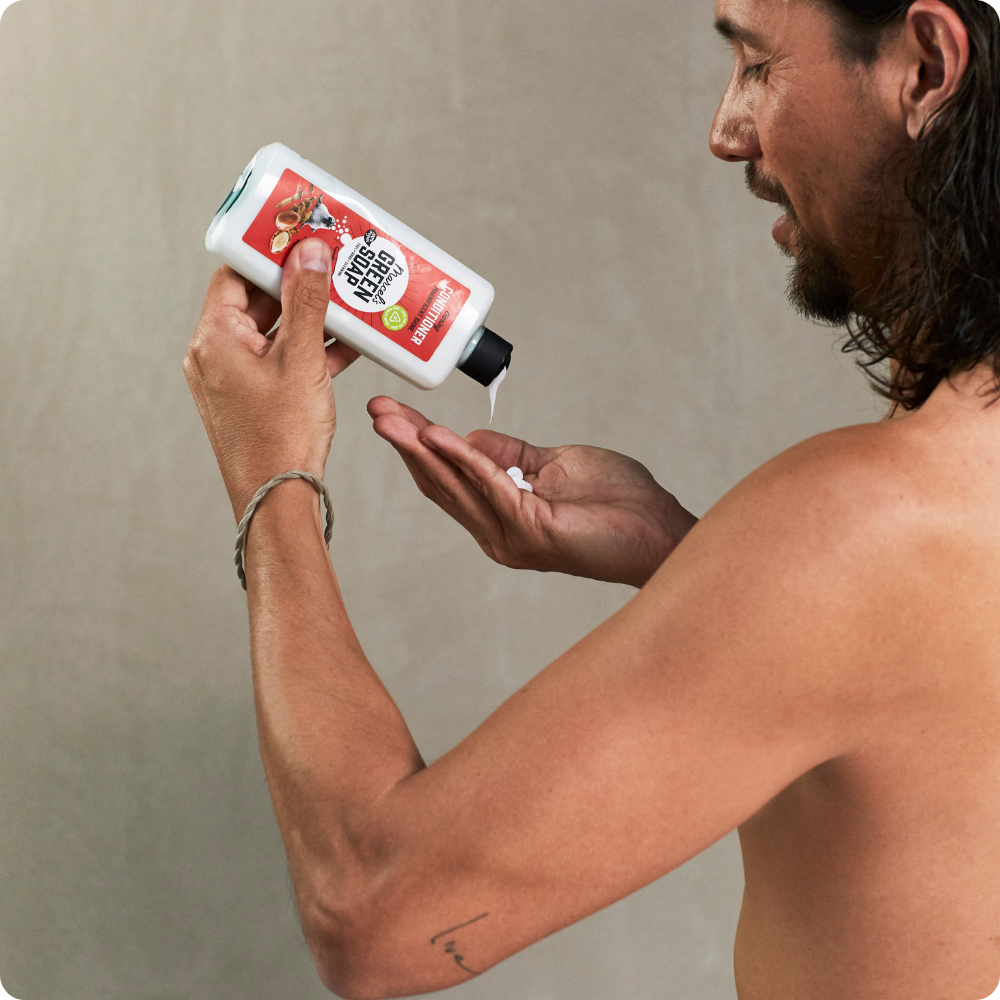 Marcel's Green Soap Caring Conditioner voor heerlijk zacht haar. Met de rijke, nootachtige geur van Argan & Oudh. Verrijkt met sheabutter voor glanzend en gevoed haar.