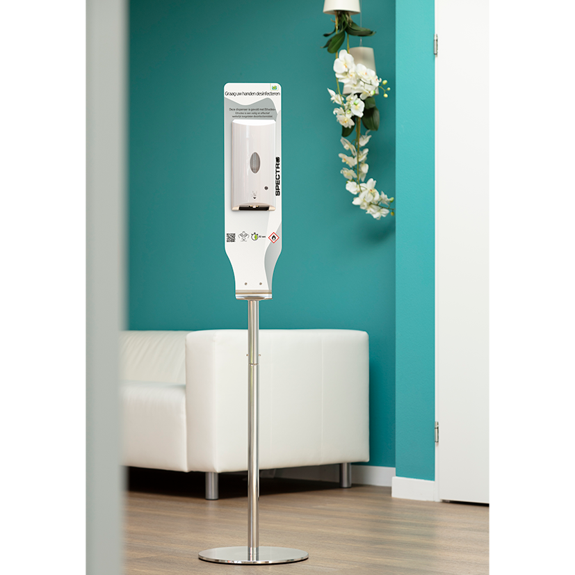 Dankzij het strakke en moderne ontwerp past de Ethades+ desinfectiezuil perfect in uiteenlopende omgevingen zoals entrees, kantoren, zorginstellingen, scholen, winkels en horecalocaties. De zuil biedt een duidelijke en zichtbare hygiënevoorziening en draagt bij aan een veilige en verzorgde uitstraling van de ruimte.