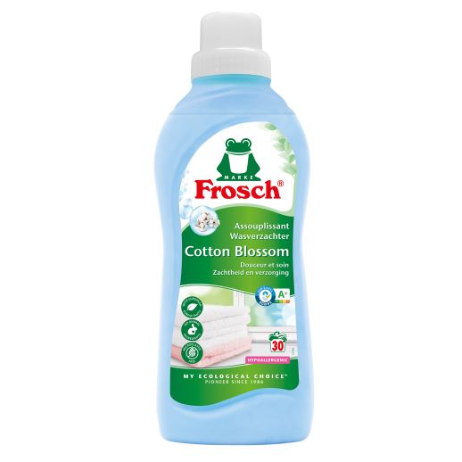 Geef je was een heerlijke zachtheid en een frisse geur met FROSCH Wasverzachter Cotton Blossom. De milde formule verzorgt je kleding en maakt textiel aangenaam zacht, terwijl het een subtiele, bloemige geur achterlaat.
