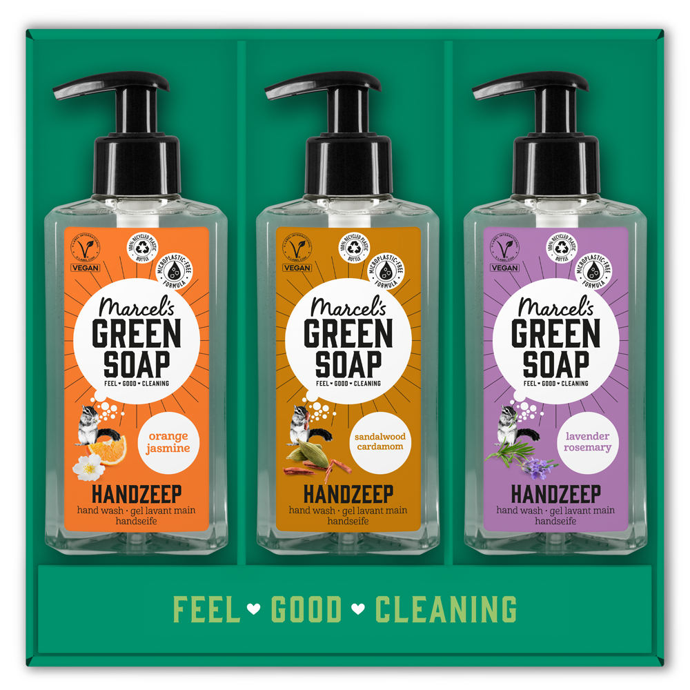 Marcel's Green Soap Giftset: een Feel Good cadeau dat verantwoord én verrassend is! In drie heerlijke geuren: Sinaasappel & Jasmijn, Lavendel & Rozemarijn en Sandelhout & Kardemom. Wie geef jij een goed gevoel?
