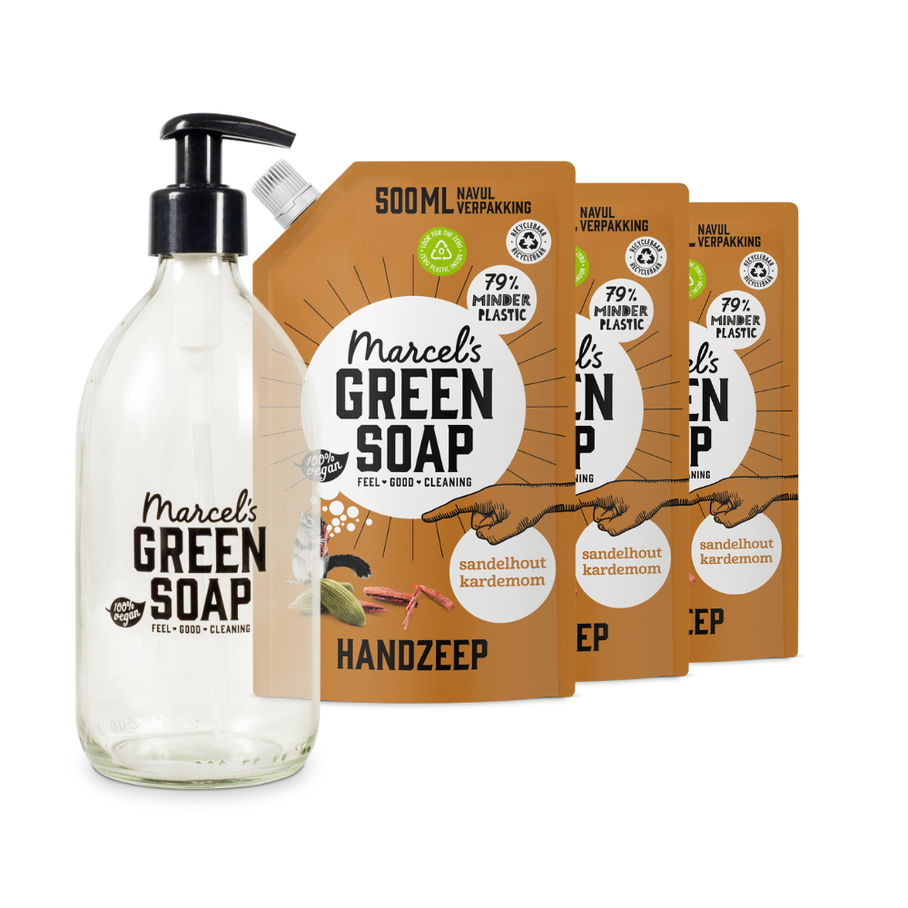 Upgrade je schoonmaakroutine met onze Glazen Fles Navulbundel. Deze bundel bevat een stijlvolle glazen fles én maar liefst drie Handzeep Navulzakken Sandelhout & Kardemom. Duurzaam en praktisch!