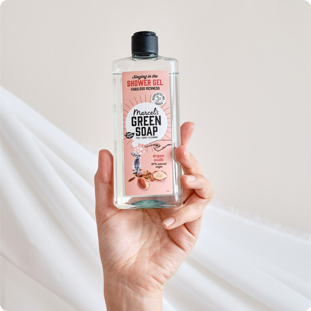 Marcel’s Green Soap Douchegel voor een heerlijke douche ervaring. Met de rijke, nootachtige geur van Argan & Oudh. Verrijkt met aloë vera en plantaardige glycerine voor extra hydratatie en zachtheid. Fles leeg? Vul 'm eenvoudig bij met de Douchegel Navulverpakking Argan & Oudh en bespaar plastic!